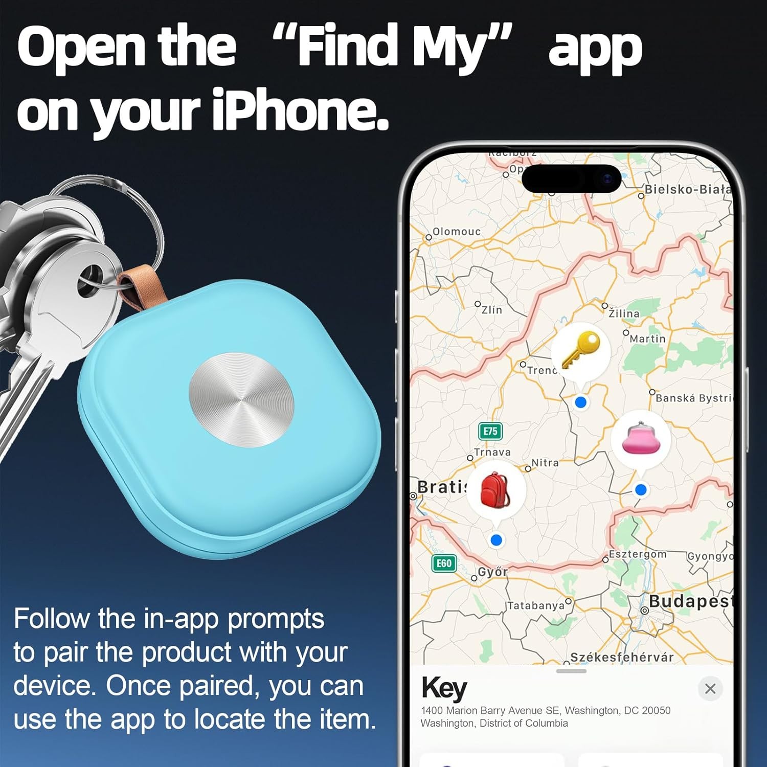 【Instantly Locate】This smart key finder with audio lets you track location in real time. Within 590-1181 inch (15-30m) Bluetooth range, use "Find My" to play a 90-100dB loud sound. Use "Find My" map navigation for out-of-range tracking.
