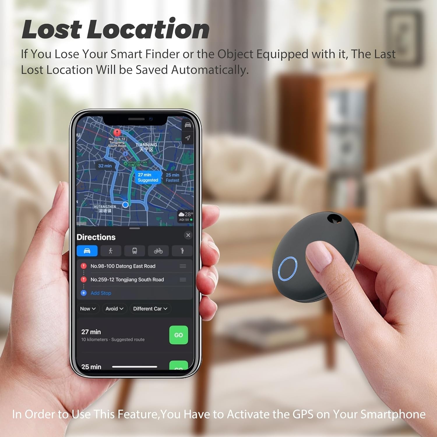 In order to use this feature, you have to activate the GPS on your smartphone.If you lose your smart finder or the object equipped