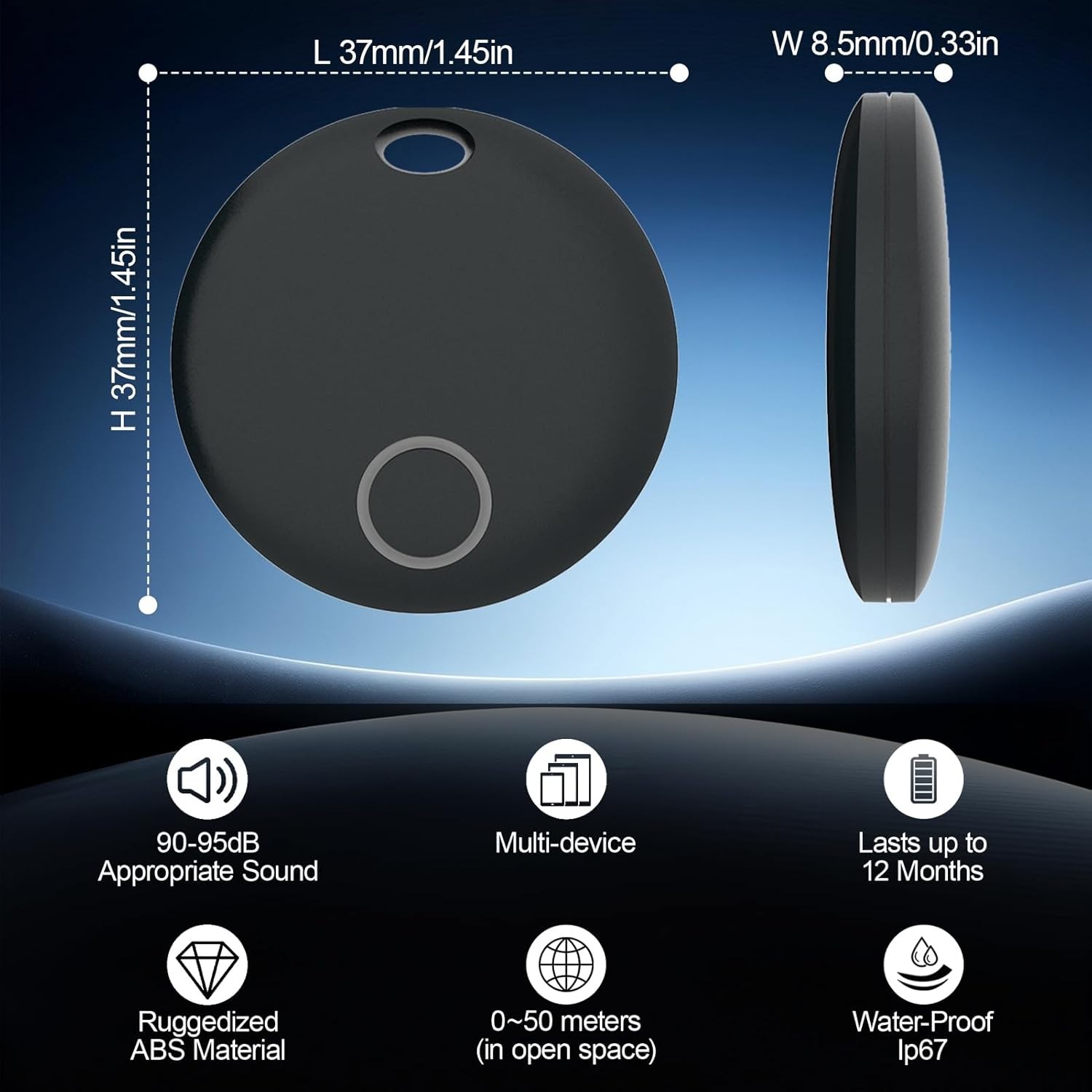 【10-50M Bluetooth Working Range】The anti-loss device transmits Bluetooth signals 10-50 meters (disconnects outside this range). Metal, concrete and other obstacles absorb/reflect signals, shortening the effective distance.
