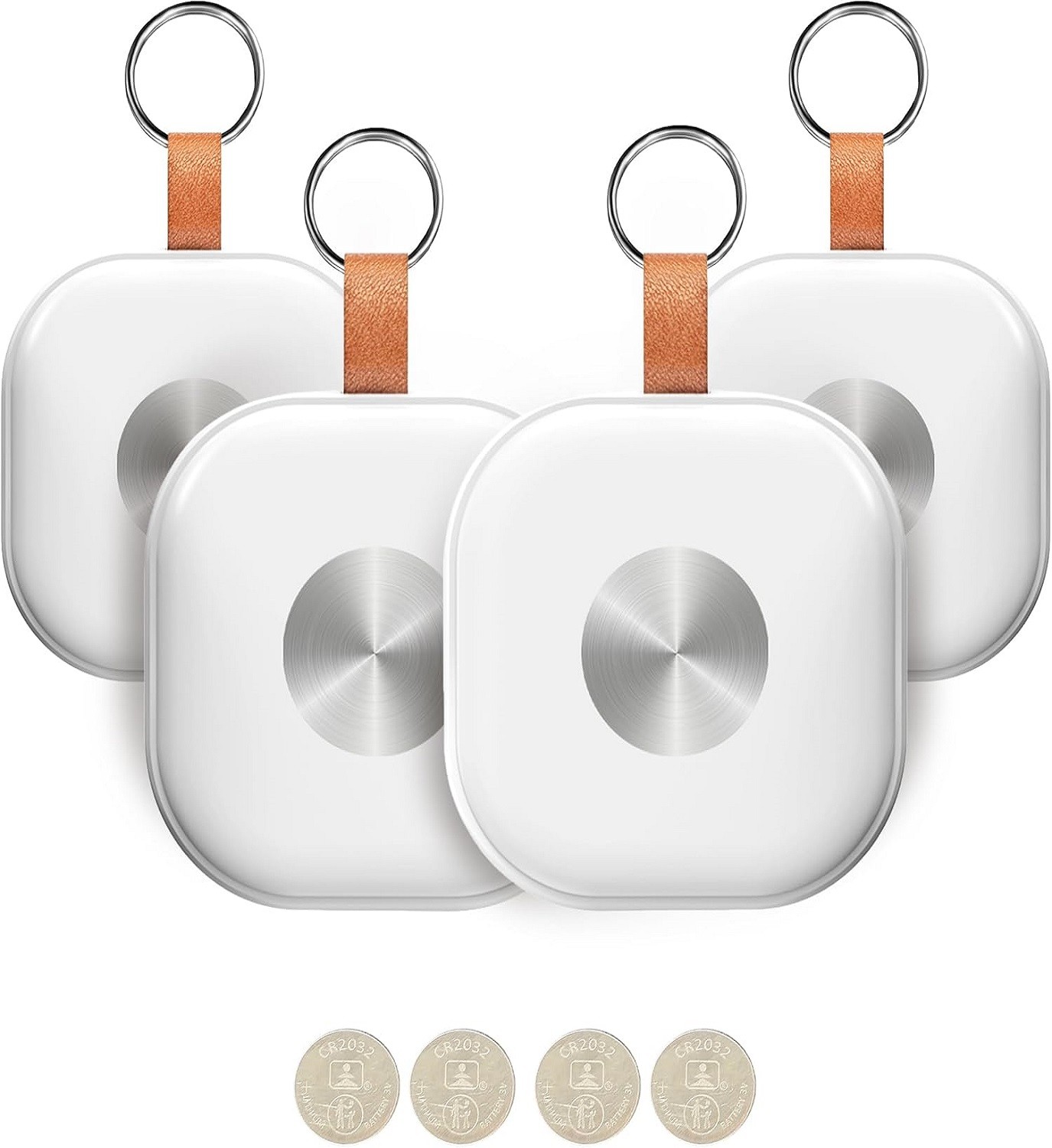 Tracker Tags 4 Pack, Luggage Tracking Tags Compatible with Find My APP (iOS Only), Key Finder Locator with Sound, Air Tracker Item Finder for Keys, Bags, Suitcases and More, White
