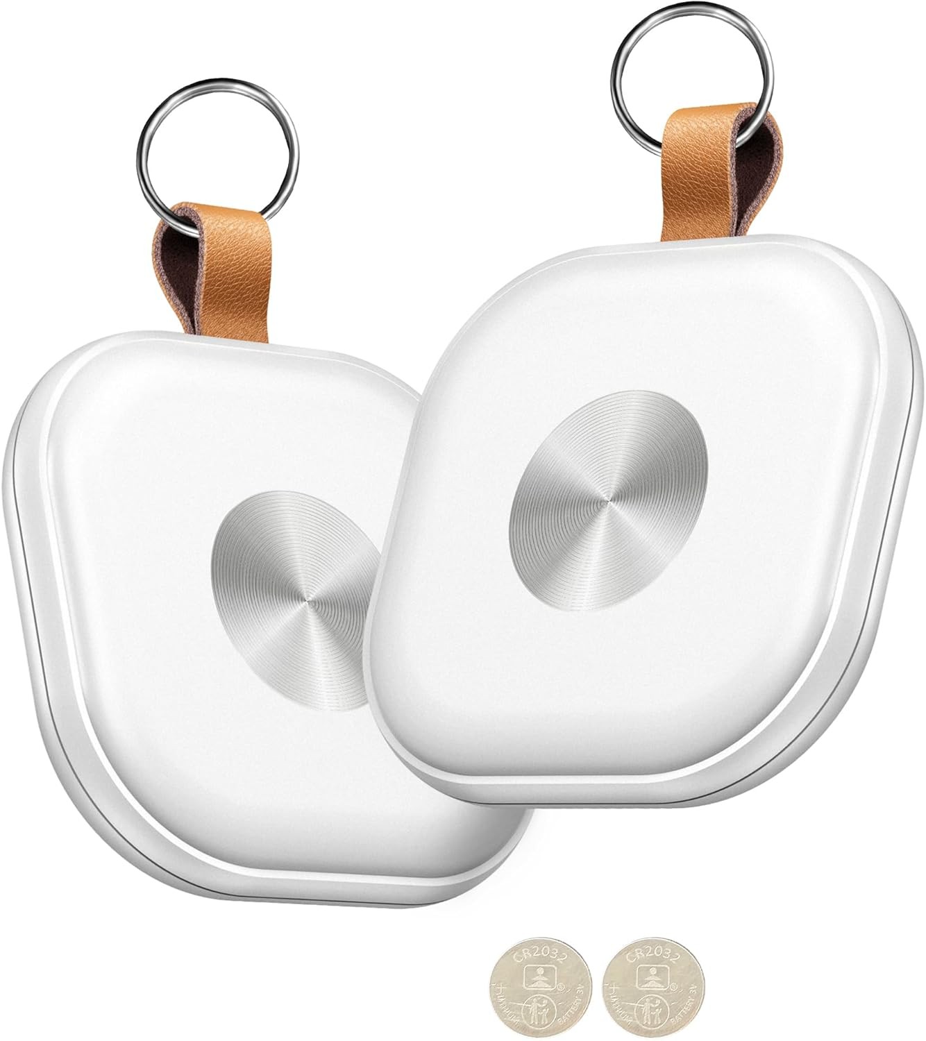 Bluetooth Tracker 2 Pack, Keys Finder and Item Locator for Keys, Bags Luggage, Suitcases and Wallet, Worldwide Tracking Tags, Works with Find My (iOS Only), White