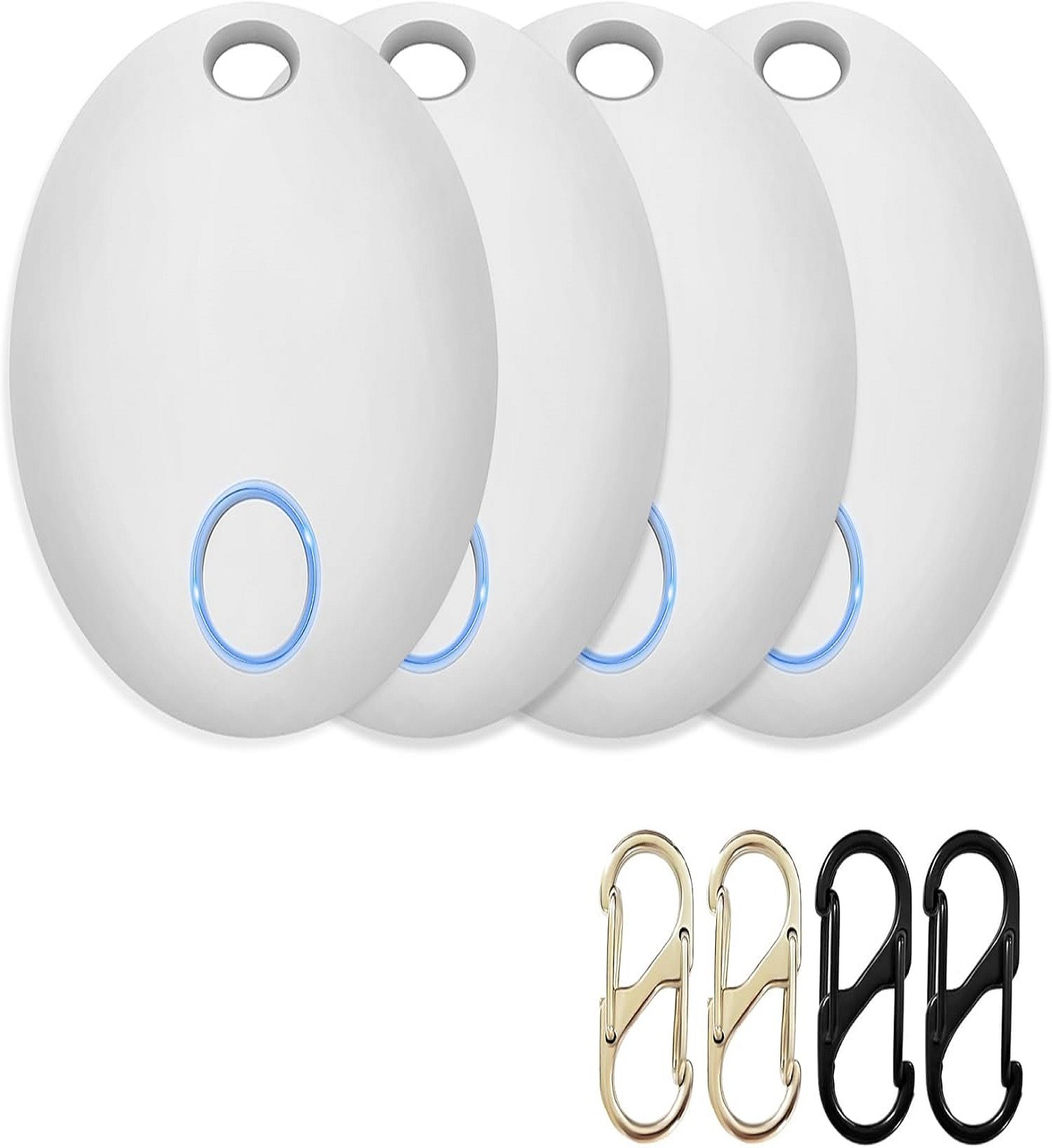 Air Tracker, Key Finder Compatible for Both iOS and Android, Bluetooth Smart Tag with Holder for Keys, Luggage, Suitcases, Pets, Dog Cat Collar, Worldwide Tracking Tag 4 Pack, White
